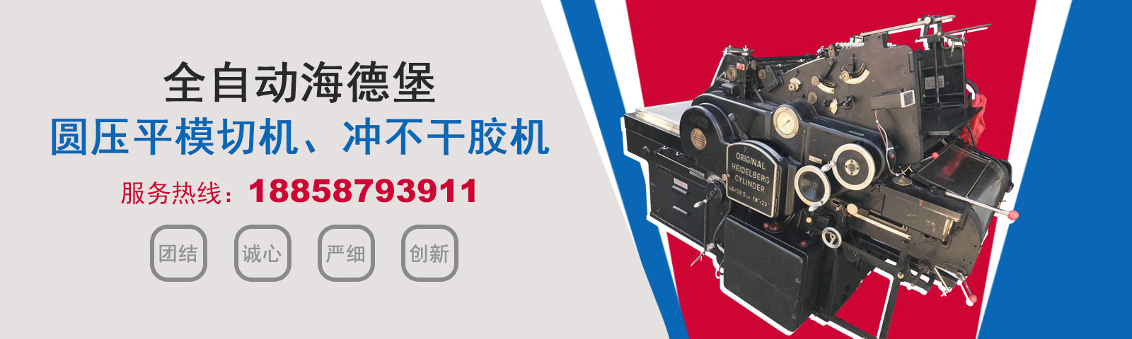 瑞安市恒柯機械廠(www.wzhkjx_com.sxhzpd.cn)是國內專業制造銷售全自動模切機,全自動燙金機,圓壓平模切機,圓壓平燙金機,滾筒燙金機,沖不干膠機,海德堡凸印機.銷售的產品系列規(guī)格齊全,產品具有速度快,壓力均勻,套印準確等特點。